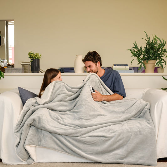 DisponibilePlaid 180x140 cm in morbido tessuto vellutato e soffice peluche sherpa. 6 temperature, timer autospegnimento e sicurezza certificata.